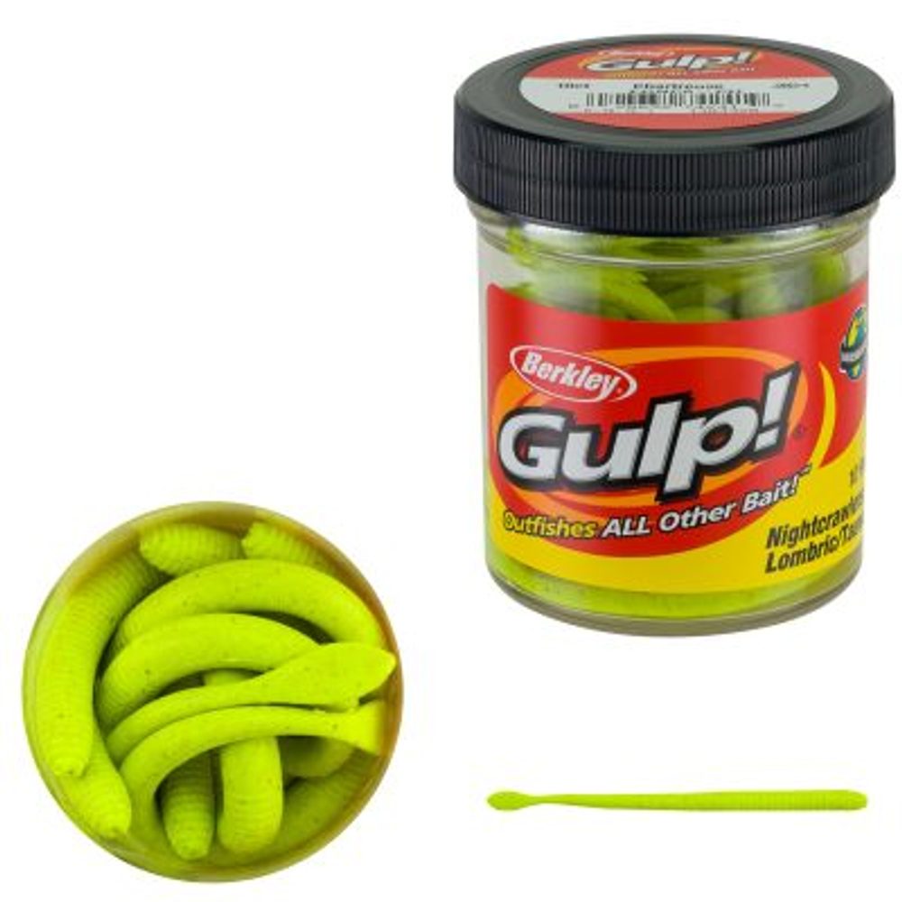 100% biodegradační přírodní hmota dokonale imitující živou tkáň. Gulp materiál dokáže mimořádně absorbovat tekutý Gulp atraktant, který se při lovu uvolňuje, čímž se zvýrazňuje pachová a chuťová stopa nástrahy, což zvyšuje šanci na úlovek (podobně jako u zraněné krvácející rybičky). Ponořením zpět do atraktantu si nástraha znovu natáhne látku do sebe. Nástrahy vydrží i několikanásobné ataky ryb. Mimořádně realistický tvar a pohyb dokonale imituje živou nástrahu.