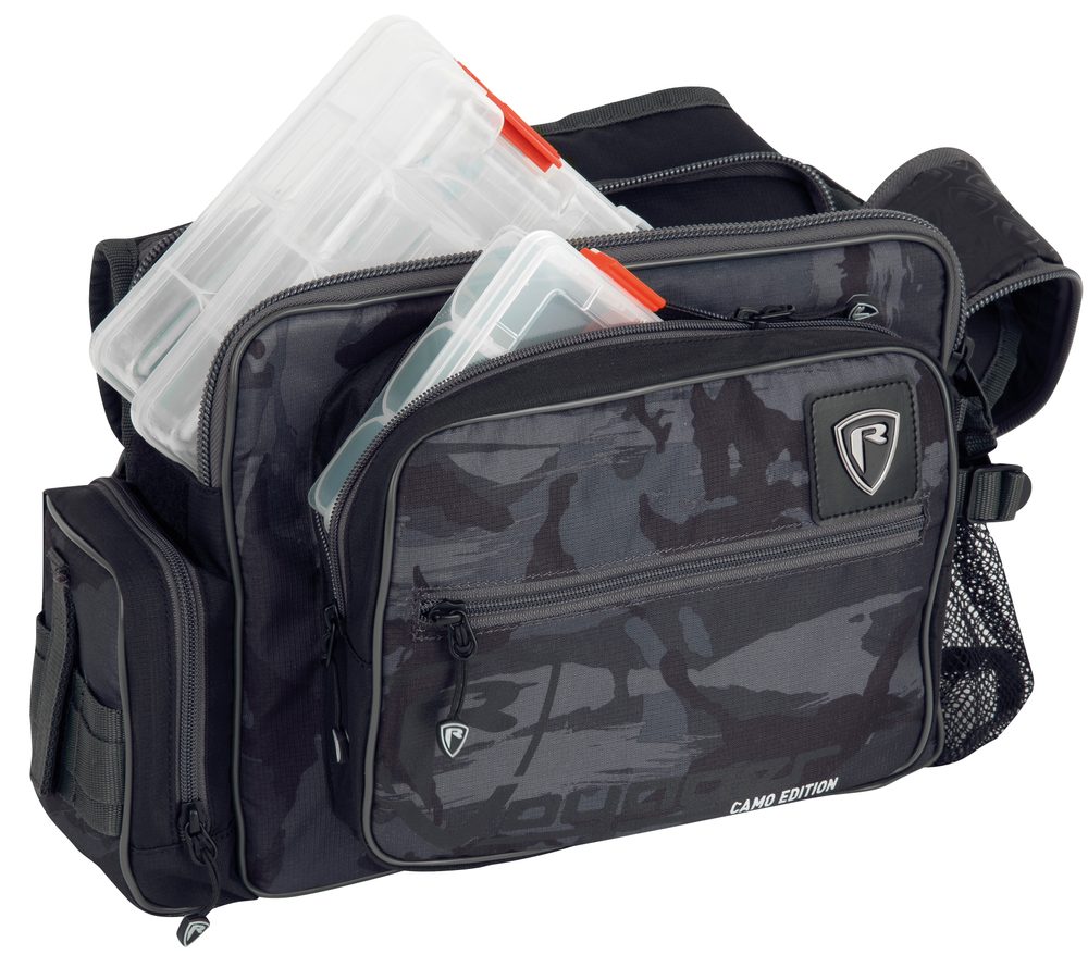 Nová přepravní taška vhodná na umístění drobností pro krátkou rybářskou výpravu. Taška obsahuje dva plastové boxy.