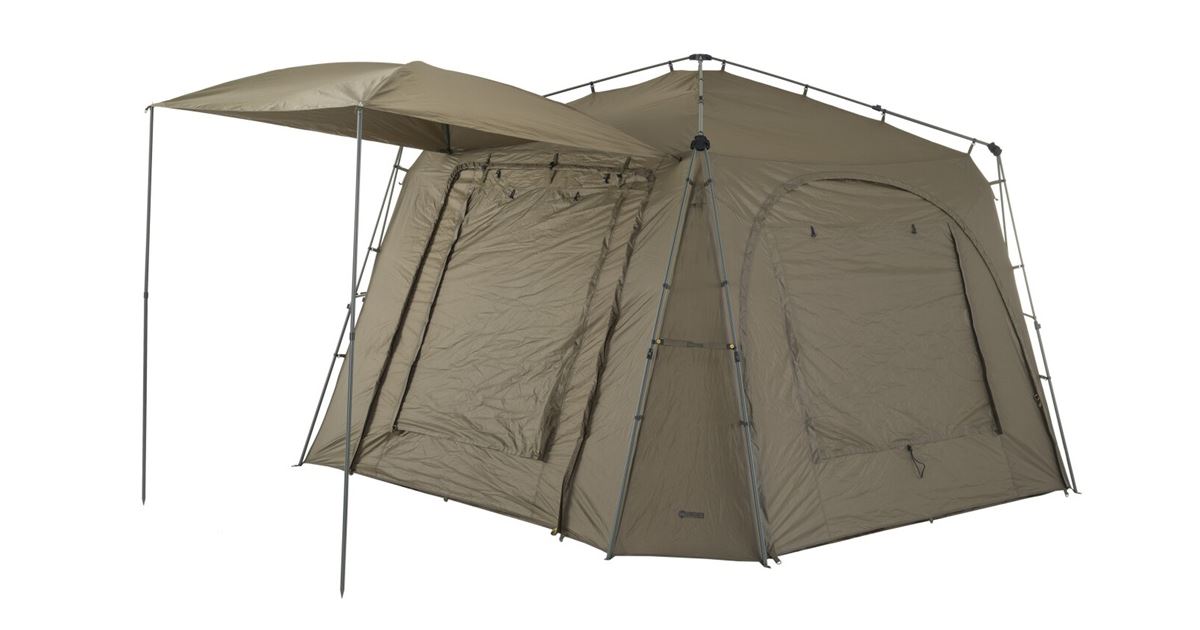 Mivardi Přístřešek Base Camp XXL nabízí prostornost a odolnost pro dlouhé rybářské výpravy i nepříznivé počasí.