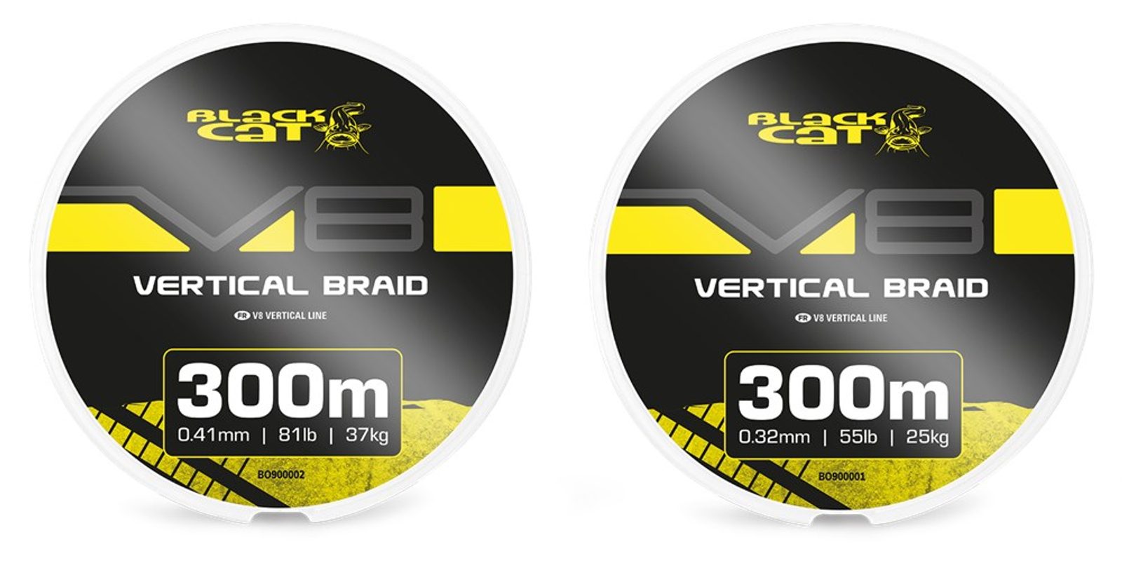 - Black Cat Šňůra V8-Line 300 m je pletená šňůra určená především pro vertikální rybolov.