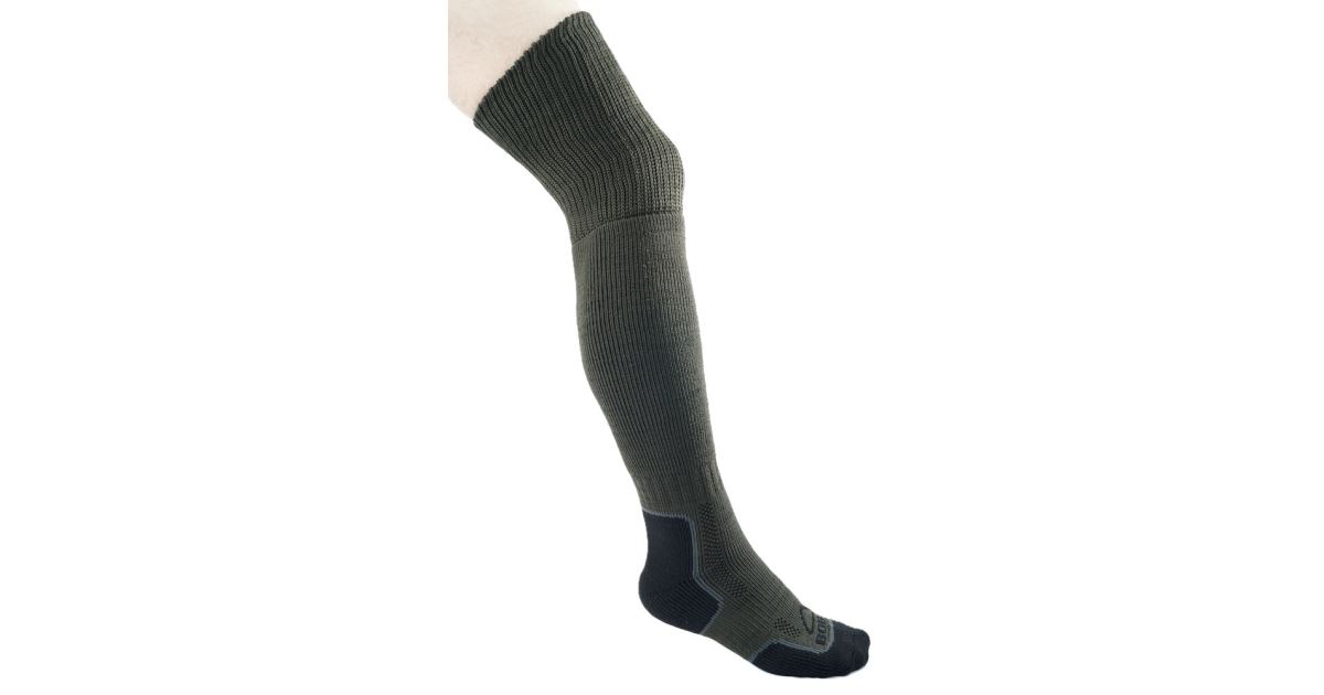 Doporučujeme pro vysokohorský trek, či pro myslivce a rybáře k ochraně kolenního kloubu. Tyto dvouvrstvé celoroční nadkolenky mají uvnitř polypropylén – duté vlákno se stříbrem a ve vrchní vrstvě velmi kvalitní bavlnu, která odsává pot z těla směrem ven. Drenážní kanály větrají Vaší nohu a zesílené chodidla garantují vysokou odolnost proti oděru a zaručují měkký došlap. Lýtková část je vysoce elastická, kvůli pohybu nadkolenky směrem dolů. Vysoko roztažný,volný lem přes koleno zajišťuje dokonalé držení při pohybu a prokrvení Vaší nohy. Stříbro, vplétané do ponožky působí antibakteriálně. Posilovací lemy přes nárt a kotník drží nadkolenku i ve volné obuvi.