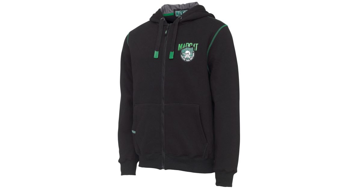Madcat mikina s kapucí a zipem, zdobená logem a odznakem, v černé barvě. Vytvořte stylový a pohodlný outfit s touto mikinou od Madcatu.