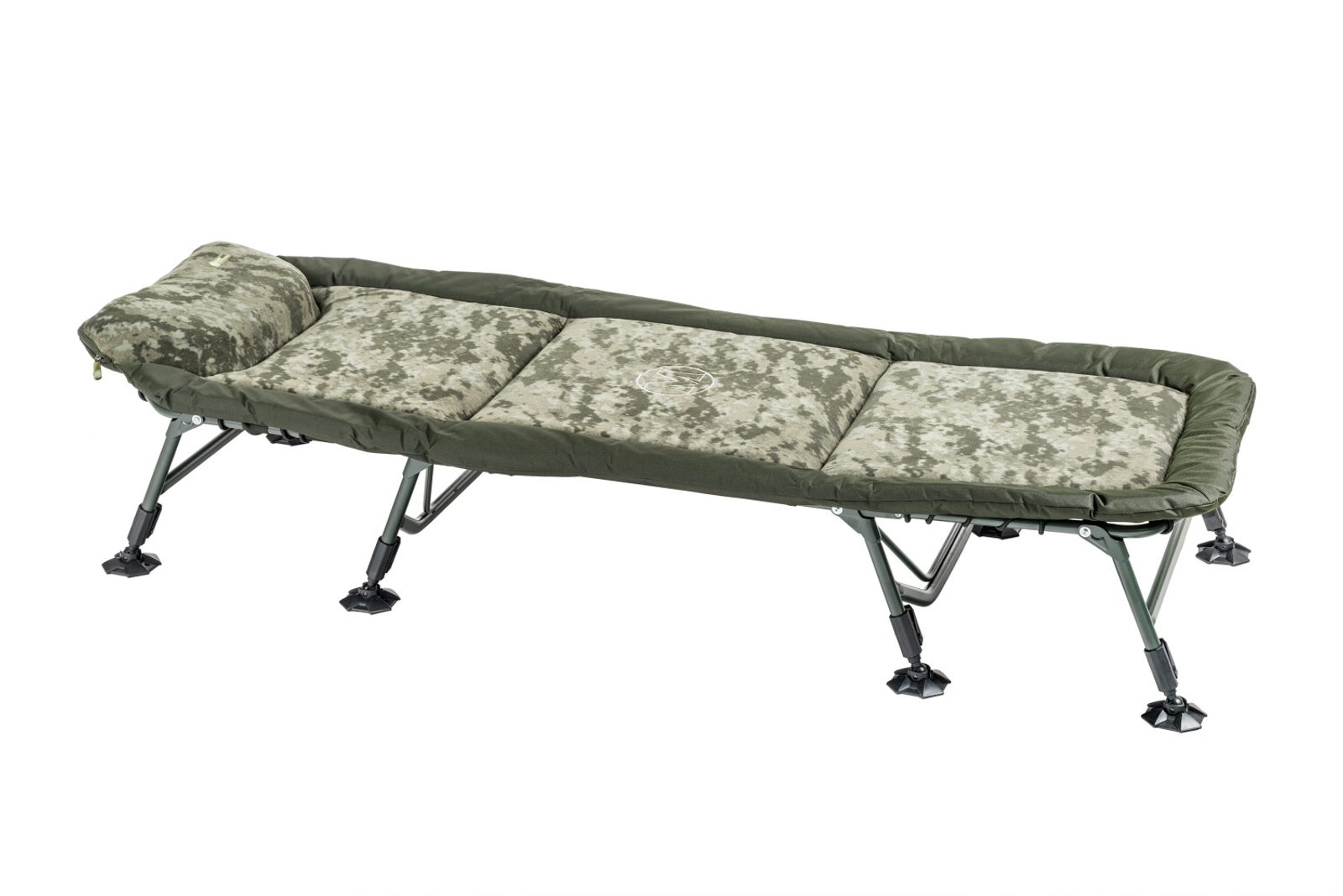 Extrémně lehké, velké a 100% ploché lehátko ve velice atraktivním designu s digitálním maskováním. Nadstandardně silná a velmi komfortní matrace s fleecovou vrchní vrstvou nabízí nejúčinnější systém regulace tuhosti pomocí elastického šněrování na spodní straně. Další výhodou jsou nohy s rozměrnými výkyvnými patkami a možností velkého vysunutí. Lehátko je dostupné ve variantě s osmi nebo se šesti nohami.