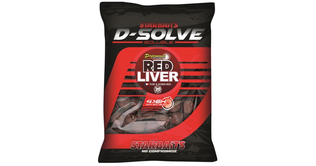 • Starbaits Rozpustné Boilie D-Solve Boilies Red Liver je kvalitní návnada pro rybolov