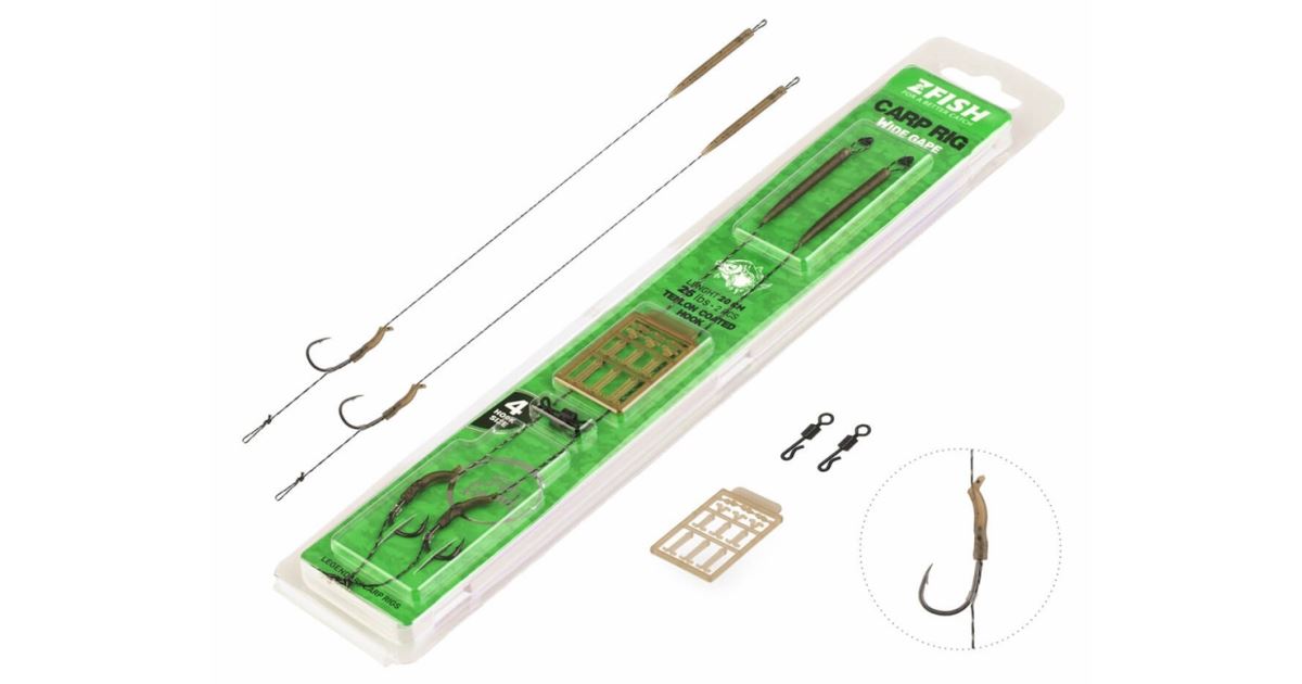 Zfish Návazec Wide Gape Carp Rig je 20 cm dlouhý návazec určený pro lov kaprů. Je navržen tak, aby zvyšoval úspěšnost chytání a zároveň minimalizoval poškození ryb.